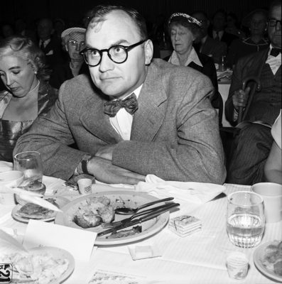 Portrait of W. F. Hufstader Jr. He is wearing a vest with a bow tie.