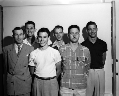 Seeking fun and knowledge, Professor C. E. Murphy of Texas Christian University and five of his students recently visited the University of Oklahoma marine field station near Willis on lake Texoma. left to right, front row, professor Murphy, and Neil Hulings of Clifton. Published in Fort Worth Star-Telegram morning edition May 18, 1952.