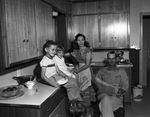 The Vern Brwer family shows it's as domestic as any away from the big top. Brewer reads the newspaper while the wife Betty washes dishes and D. D., 7, and Kathy, 4, dry.