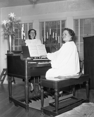 Mrs. Jack Armstrong, (left), and Mrs. George Orum, (right), chosen as the soloist and organist for St. Stephens's Presbyterian Church's Easter Sunday service. Published in the morning edition, April 9, 1950.