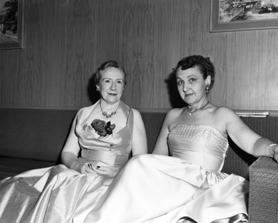 Mrs. Minnie P. Cooper of Corsicana, left, president of the Texas Federation of Business and Professional Women's Clubs, and Mrs. Arvilla Patison, Fort Worth chairman of the state meeting, May 9-11, being held at Hotel Texas and the Hilton Hotel.
