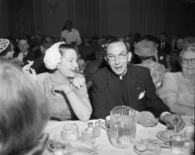 Crowd at public banquet for Bishop Thomas K. Gorman at the Hotel Texas, Fort Worth; Father Thomas Taaffe at center, 05/11/1952