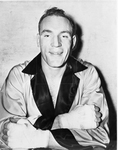Delmar Koch, state champion of 1939 LightHeavy Weight, of Amarillo, Texas. Koch is wearing a robe, and smiling.