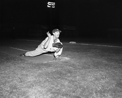 Max Patkin, baseball entertainer/player/baseline coach for the Fort Worth Cats in game against Houston at la Grave Field, Fort Worth, 05/12/1952