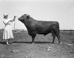 Mrs. Ruth Hahn is very proud of her 2,000-pound Milking Shorthorn bull, Ma's Fearless, which she uses on her farm near Grapevine.