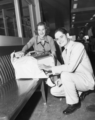 The reason for the big smile on the face of Ray Greene, AM reporter, is the thought of all that good food the combination of a new wife and a new electric cooker will bring. The cooker was a gift from the third floor to Ray and his bride, Sarah, former Dallas News reporter.