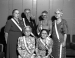 Six past presidents of the Daughters of the Republic of Texas are attending the Daughters of the Republic of Texas convention here. Seated are Mrs. O. M. Farnsworth, left, and Mrs. Madge Houston Hearne. Standing, left to right, are Mrs. Walter Prescott Web, Mrs. Henry W. Wofford, Mrs. Paul Lobit, and Mrs. Ben E. Edwards. Published in Fort Worth Star-Telegram evening edition May 14, 1952.