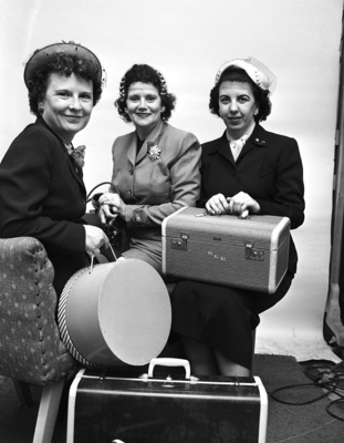 Three members of the Fort Worth Communication Club in Memphis, to attend a convention of PBX operators, are, left to right, Mrs. Charles Clements, Mrs. W. H. Dickenson and Miss Margie Hurt. Published in Fort Worth Star-Telegram morning edition May 17, 1952.