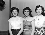 Three graduating seniors of Paschal High School, left to right, Miss Patricia Gay Goodale, Mrs. Earl Gatlin and Miss Nancy Sue Fletcher, were hostesses recently for swimming party and picnic for a group of graduating classmates. Published in Fort Worth Star-Telegram morning edition May 24, 1952.