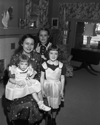Mrs. Felix Ankele, new president of Muarda Club of the Junior Woman's Club, is shown at her home, 2224 5th Avenue, with her three daughters, Martha, 2, on her mother's lap; Fredrieka, 10, and Margaret, 6, left to right. Published in Fort Worth Star-Telegram evening edition May 19, 1952.