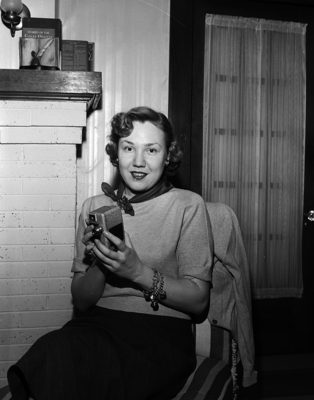 Miss Janet Jackson, will make a picture record of her round-the-world. She is the daughter of Mr. and Mrs. F. H. Jackson of Tulsa, former residents of Fort Worth. Published in Fort Worth Star-Telegram morning edition May 18, 1952.