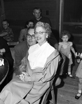Jeannette Ellis demonstrates with a big smile how she and many, many others enjoyed the STEA picnic proceedings staged under the kindly guidance of Jack Butler who appears to be saying to himself, boy, what a picnic.