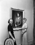 Mrs. J. W . Mitchell, right and her daughter, Mrs. Thomas M. Ryan, are pictured with portrait of their mother and grandmother, respectively , the late Mrs. John G. Waples, painted by Murray P. Bewley of Nice, France, former Fort Worth artist.