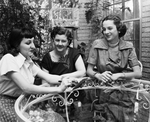 Mrs. Richardson S. Harris, left, Mrs. Mal Rumph, center, and Miss Madge O'Neal were in charge of a cold drink party given recently by the Fort Worth branch, AAUW, at Mrs. Rumph's home, for college girl graduates. Published in Fort Worth Star-Telegram morning edition May 8, 1952.