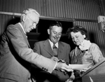 Karl Hoblitzelle, left, founder of the Hoblitzelle Award for arigiculture contribution, smiling with two others.