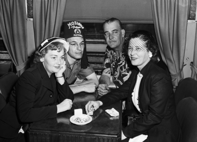 Pictured here is Mr. George M. Davis, Mrs. Davis, Bryon Cooper, and Mrs. Cooper. Who settled down during a trip to Austin and the Texas Shrine Association.