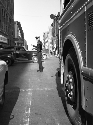 Policeman H. F. Hopkins shown directing traffic in Fort Worth, Texas.