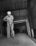 Part of the first new wheat of the year to be received gets a probing from Ollie Smith, scales operator of the Uhlmann Grain Elevator Company. Published in Fort Worth Star-Telegram morning edition May 24, 1952.