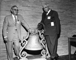 T. E. Erwin of Dallas, left, Austin College '94, and Dr. Cecil H. Lang, '12, executive secretary of the Dallas Presbytery, examine the bell set up on the Austin College Campus. Published in Fort Worth Star-Telegram morning edition May 26, 1952.