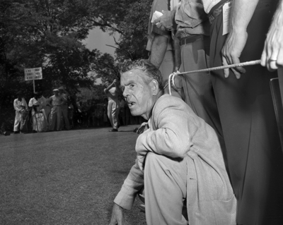 Tom Burke, Sr., Houston, approves Jimmy Demaret's tee shot. Published in Fort Worth Star-Telegram morning edition May 25, 1952.
