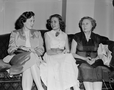 In Mineral Wells for the state GOP convention are, left to right, Mrs. Dorothy Bierschwale, wife of Calvin Bierschwale of San Antonio, an alternate delegate; Miss Angilee Green and her mother, Mrs. Frances Green (wife of Mr. Robert "Ford" Green), a delegate from San Antonio. All are Taft Supporters. Published in Fort Worth Star-Telegram morning edition, May 27, 1952.