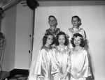 Participants in the special Easter drama that was at the Little Church Around the Corner, 3123 Ellis Ave. Left to right, Sue Thompson plays James' mother, Mary; Jaletta Collins as Mary Magdalene and Mozelle Welty as Salome. In the back row are Don Jacque Little as Peter and Don Horney as John. Published in Fort Worth Star-Telegram evening edition March 28, 1950.