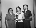 Winners in the annual women drivers clinic "rodeo" were, left to right, Mrs. H. E. Layton, second; Mrs. Charles I. Williams, first, and Mrs. Hugh P. Cowdin, third. Published in Fort Worth Star-Telegram morning edition May 27, 1952.