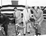 From left to right, Ben Critz, Tom Vandergriff, Amon Carter, and John F. Gordon were the first to turn dirt at the new General Motors plant in Arlington, Texas at the groundbreaking ceremony.