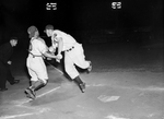 Tulsa's Earl York gets the tag treatment from Cats' Manager Bobby Bragan in first inning game at La Grave Field. Published in Fort Worth Star-Telegram morning edition, May 28, 1952. Tulsa Oilers (baseball)