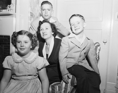 Mrs. A. D. Armstrong, 1119 Penn, who recently was installed as president of South Side Lady Lions Club, is shown with her three children, Carolyn, 9; Dale, 13, and Charles, 6, left to right.