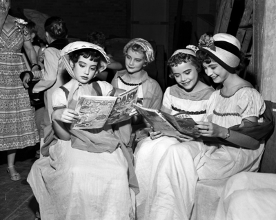 Calm And Collected - The aristocracy of the Regency era settled down in Fort Worth Monday night for a session with funny books. And there was nothing like the performers before curtain time. Costumed and ready for the show are Ceanne Jackson, Jan Erwin, Mary Patterson and Cecilia Twyman.