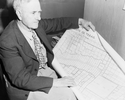 Attention of these Texas Panhandle residents is focused on oil development in Roberts County. J. K. McKenzie, owner of Roberts County's only abstract company.