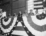 Bell Aircraft Corporation helicopter factory at Hurst, Texas, formal opening. Left to Right, Rear adminstration. Paul E. Phil, Major General Samuel E. Anderson, Ray P. Whitman, Vice Adminstration. Harold M. Martin and Lawrence D. Bell.