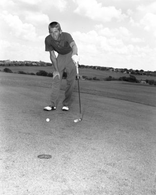 Kenneth Edwards is shown. He won extra-hole semifinals matches along with Ernie Vossler. They will both meet for city golf crown at Worth Hills. Published in Fort Worth Star-Telegram morning edition June 8, 1952.