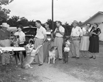 Pets lined up at Lake Worth Wednesday for immunization against rabies. Dispenser was Dr. H. V. Cardona, who is preparing a shot for a dog belonging to Carolyn Harrison, first in line. Others, in regular order, waiting for their dogs to get shots, are O. L. Baker, Paul Raymond and son, Gilbert, 2, D. B. Greene, V. N. Browning, Mrs. D. B. Greene and Mrs. Jack Shytles.