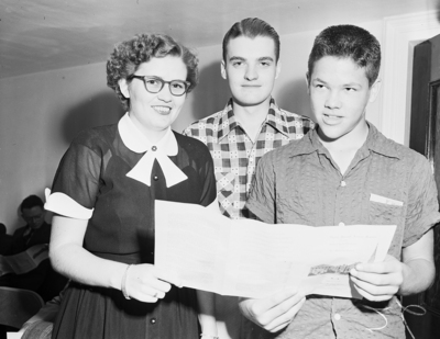 Children of ministers enjoy the annual conventions, too. The Central Texas Methodist Conference meeting in Waco brought together three children of pastors. They are, left to right, Mary Lou Sisserson, daughter of Reverend and Mrs. C. H. Sisserson of Cleburne; Alfred Brown, son of Reverend and Mrs. G. Alfred Brown of Fort Worth, and Stanley Williams, son of Reverend and Mrs. L. S. Williams of Waxahachie.