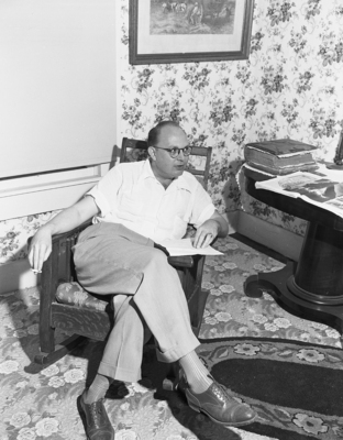 Robert Doss, young Denison lawyer working on Eisenhower presidential campaign. He is sitting on a chair.