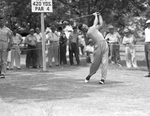Shown is Jack Burke, Jr. in swinging action. Behind him, a crowd of spectators watch. Published in Fort Worth Star-Telegram evening edition June 12, 1952.