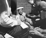 George Fazio, runner-up to Ben Hogan answers reporters' questions in dressing room. Hogan finished third in the U.S. Open Golf Tournament held at the Northwood Club in Dallas, 06/13/1952. Published in Fort Worth Star-Telegram morning edition June 14, 1952