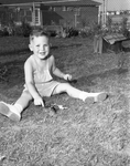 It's not every city youngster that can boast of his own nest of baby cottontail rabbits. That's why James Martin Petty Junior, 22 months, looks after his three so carefully. The mother rabbit made her nest in the Petty flower bed last year also. The boy is the son of Mr. and Mrs. James Martin Petty Senior of 3616 Spurgeon.
