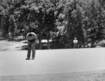 Johnny Bulla, sinks 7-foot putt on No. 18 for birdie that gave him 68, one of only three sub-par rounds recorded. Published in Fort Worth Star-Telegram morning edition June 14, 1952