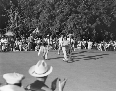 Ben Hogan, who finished third after having won the Open title in 1948, 1950, 1951, leaves the 18th green after final putt. Published in Fort Worth Star-Telegram morning edition June 15, 1952
