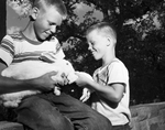 Baby Bunnies - Thomas Kirke, right, holds two of six tiny rabbits he and his brother Alfred, left, entered in a pet show Tuesday. that's Mother Rabbit in Afred's arms. The boys are sons of Mr. and Mrs. Alfred Kirke of 2605 Rand.