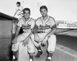 Hector Mayer, left and Mike Clark, right of Houston Buffs baseball are shown in this photograph.