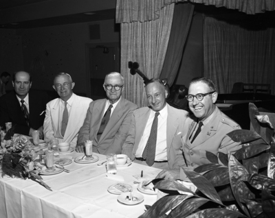 Farewell Banquet - Enjoying a joke at the statewide farewell dinner given on Thursday for Colonel Delbert B. Freeman, extreme right, who is being transferred from U. S. Corps of Engineers office here to St. Louis, are, left to right, Mayor Edwards, John W. Carpenter of Dallas, Trinity Improvement Association head, and Web Maddox.