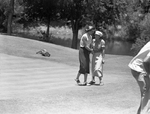 Pat Ganer, left, gets congratulations from Mrs. C. D. Lee after 1-up victory in their semifinals match. Published in Fort Worth Star-Telegram evening edition June 20, 1952