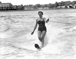 Whee! - Miss Le Rita Aston takes a Saturday spin on water skis at Lake Worth. The telephone company employee teaches the sport on weekends and after working hours.