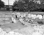 Typical of scenes being enacted at lake and beach resorts near by noon this Fourth of July weekend is this sun-bathing group. Back, left to right are: Mrs. Dave W. Sheddon, Duke Ross, Mrs. Frank Bailey, and Mrs. Stanley Martin; front little Terry Bailey chats with Dave W. Sheddon, center, while Mrs. Ross looks on. The group was pictured sunning after a swim at Eagle Mountain Lake.