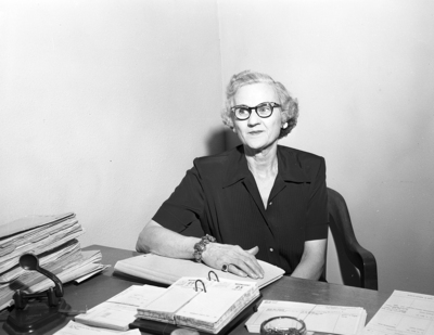 Mrs. Irene Dooley with Sinclair Oil 7 Gas Company has been taking care of the thousand fold details for almost 17 years... Her title is assistant to the manager of crude marketing for the firm here... The Fort Worth office handles oil purchases in Texas.