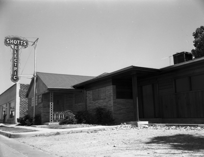 Exterior shot of the new office and warehouse of the Shotts Electric Company.